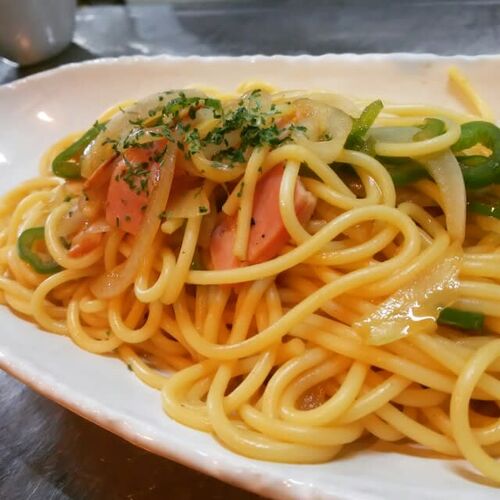 あきる野市五日市 レストラン洋食キッチン シオンの陽一です。 雨でダメかと思いましたが、JAあきがわ五日市支店の盆踊りは開催中です。 人出も多く賑やかです。 シオンも出店中です。 写真は「ガーリックスパゲティ」です。 にんにく風味のスパゲティです…