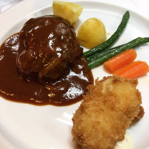 あきる野市五日市 レストラン洋食キッチン シオンの陽一です。 またゲリラ豪雨が来るかと構えていましたが大丈夫でした。 今日はあまり降りませんでしたね。 写真はおすすめセットメニューの「ハンバーグステーキ&カニクリームコロッケ」です。 ハンバーグ…