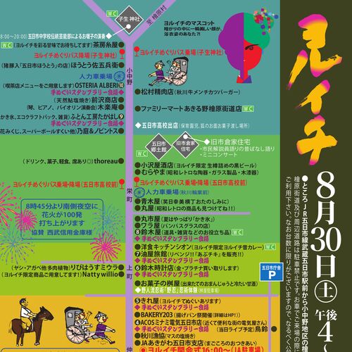 あきる野市五日市のレストラン、洋食キッチンシオンの陽一です。明日はいよいよ『ヨルイチ』です。昨年は台風接近で中止になってしまいましたが今年は大丈夫そうですね。16:00から21:00、駅前から子生神社まで。各種催しとお買い物をお楽しみください。シオ…