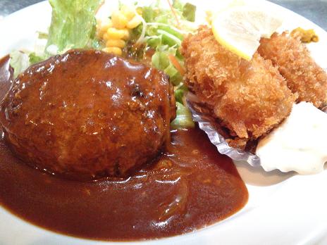2012-01-08 ハンバーグステーキ&カキフライ 季節のメニュー あきる野市五日市 レストラン洋食キッチン シオンの陽一です。 正月明け最初の土曜日でした。 今日は武蔵五日市七福神めぐりの参拝者が多かったですね。 シオンの向かいにある上町延命地蔵尊は朝から賑わっていました。 写真は「ハンバーグステーキ&カキフライ」です。 季節限定のメニューで、広島県産のカキフライ2つとハンバーグステーキのセットになっています。 スープ、ライスorパンが付いて1,200円です。 ▲ハンバーグステーキ&カキフライ。 五日市のレストラン 洋食キッチン シオンhttp://www.kitchen-sion.com/