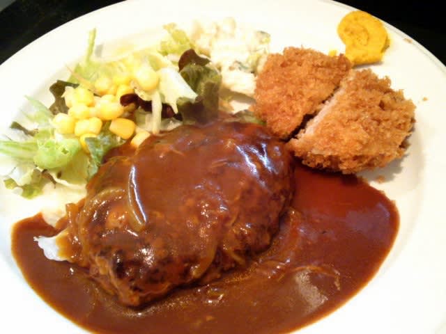写真はおすすめセットメニューの「ハンバーグステーキ&一口ひれかつ」です。