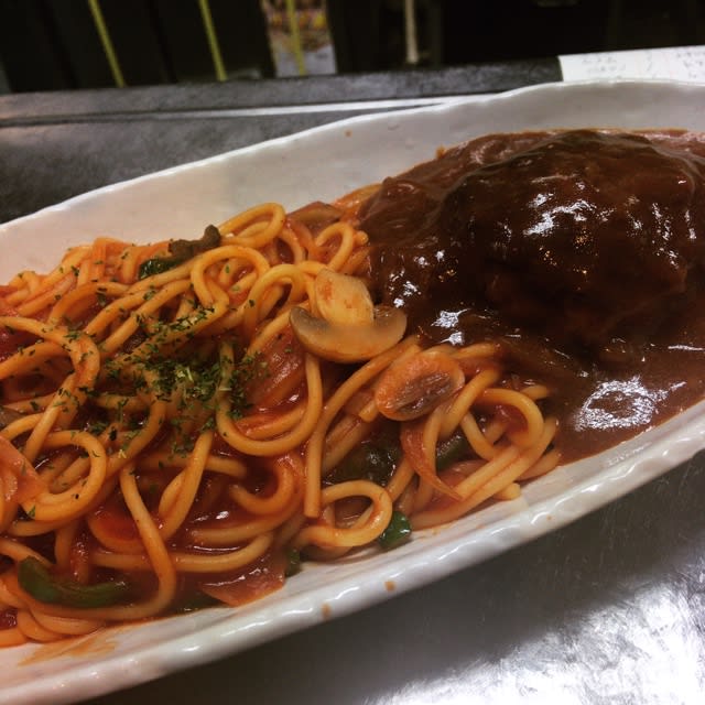 2022-05-29 ハンバーグスパゲティ スパゲティ あきる野市五日市のレストラン、洋食キッチンシオンの陽一です。昨日は小学校の運動会でした。前日が大雨でしたが、朝から晴れていい天気の中賑やかに行われました。いい天気すぎて暑かったですね。明日5月30日(月)は定休日になりますので、シオンはお休みいたします。写真は「ハンバーグスパゲティ」です。手作りハンバーグをナポリタンに添えたメニューになります。スパゲティももちろん手作りです。ハンバーグスパゲティはミニサラダが付いて990円です。▲ハンバーグスパゲティ。五日市のレストラン 洋食キッチン シオンhttp://www.kitchen-sion.com/
