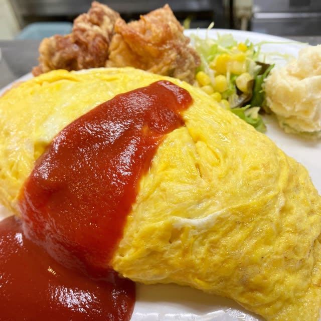 2025-02-06 昔ながらのオムライス ケチャップソース 若鶏の唐揚げ添え おすすめセットメニュー あきる野市五日市のレストラン、洋食キッチンシオンの陽一です。今日も寒いですね。風がとにかく冷たいです。本来はこれくらいなのでしょうが暖かい日があったせいか余計に寒く感じます。写真はおすすめセットメニューの「昔ながらのオムライス ケチャップソース 若鶏の唐揚げ添え」です。トロトロではない玉子で包んだ、昔懐かしい姿のオムライスのセットになります。オムライスも唐揚げもどちらも手作りです。スープと選べるドリンクが付いてランチタイムは1,430円です。▲昔ながらのオムライスケチャップソース若鶏の唐揚げ添え。五日市のレストラン 洋食キッチン シオンhttp://www.kitchen-sion.com/