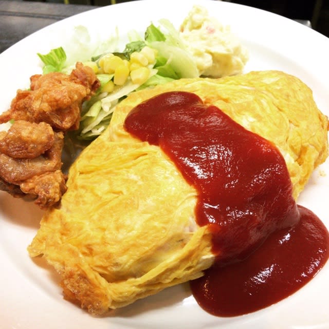 写真はおすすめセットメニューの「昔ながらのオムライス ケチャップソース 若鶏の唐揚げ添え」です。