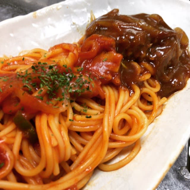 スパゲティはケチャップソースで味付けしたナポリタンです。