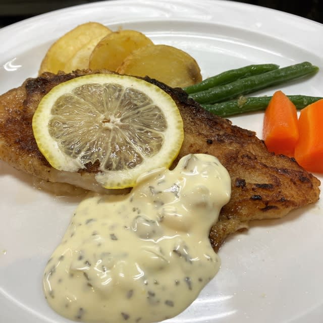 2024-07-14 舌平目のムニエル お魚料理 あきる野市五日市のレストラン、洋食キッチンシオンの陽一です。明日7月15日(月)は祝日になりますので営業し、翌16日(火)を振り替えでお休みいたします。今日は降りそうで降らないですね。そのせいか蒸し暑いので、ザーッと降ってくれた方が涼しくなりそうです。写真は「舌平目のムニエル」です。圧着フィレを使用していますので身が大きく食べ応えがあります。ベトナム産の舌平目には自家製のタルタルソースを添えています。舌平目のムニエルは880円です。▲舌平目のムニエル。五日市のレストラン 洋食キッチン シオンhttp://www.kitchen-sion.com/