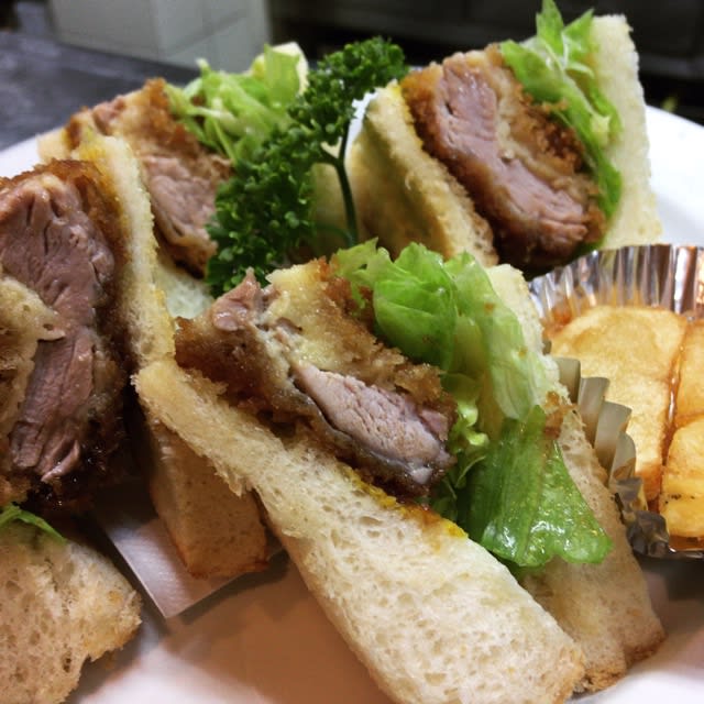 2019-12-18 ひれかつサンド サンドイッチ あきる野市五日市のレストラン、洋食キッチン シオンの陽一です。日替わりで気温が上がったり下がったりしています。どうしたのでしょうか。今日は日中わりと暖かかったですが、明日は気温が上がらない予報です。写真は「ひれかつサンド」です。パンは天然酵母で作られたスリールさんのパンです。やわらかい赤身のヒレ肉を揚げて、レタスと一緒にサンドしています。ひれかつサンドはポテトフライが付いて990円です。▲ひれかつサンド。五日市のレストラン 洋食キッチン シオンhttp://www.kitchen-sion.com/