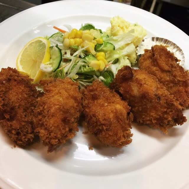 2021-10-31 季節限定牡蠣メニュー 季節のメニュー あきる野市五日市のレストラン、洋食キッチン シオンの陽一です。お待たせしました、いよいよ11月から牡蠣メニューが始まります。広島県産の大粒カキを今年も使用します。メニューは例年通り「カキフライ」「ハンバーグステーキ&カキフライ」「カキとほうれん草のグラタン」の三種類です。「カキフライ」と「ハンバーグステーキ&カキフライ」はスープと、ライスorパンが付いて1,320円で、「カキとほうれん草のグラタン」は1,100円になります。ハンバーグステーキ&カキフライは夜はミニサラダが別盛りになり付いてきます。カキメニューは来年3月末までの期間限定になります。明日11月1日(月)は定休日になりますのでお休みいたします。▲カキフライ。五日市のレストラン 洋食キッチン シオンhttp://www.kitchen-sion.com/