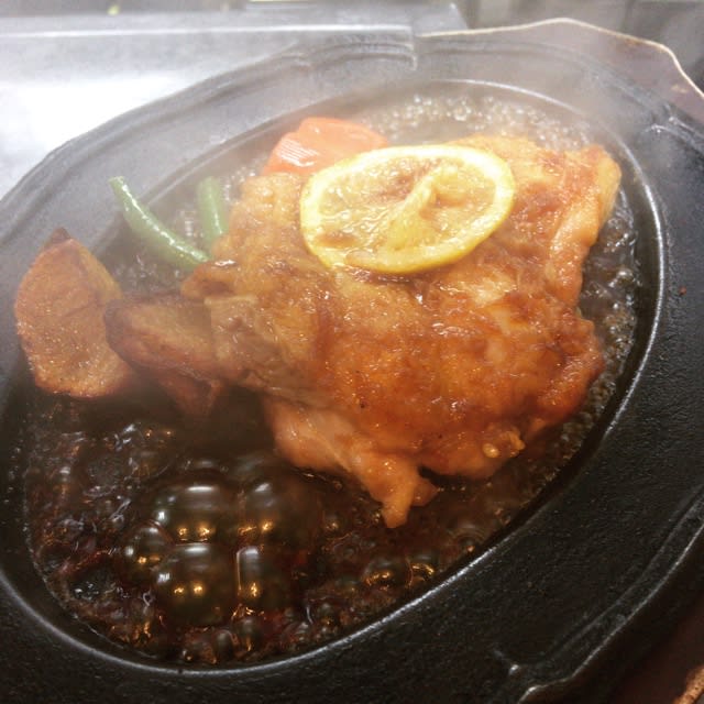 2022-01-09 チキンステーキ お肉料理 あきる野市五日市のレストラン、洋食キッチンシオンの陽一です。1月10日はだるま市です。毎年この日は檜原街道沿いに達磨や縁起物がたくさん並びます。たくさんの達磨の山は眺めているだけでもご利益ありそうですよ。明日は月曜日ですが祝日になりますのでシオンは営業いたします。翌火曜日の11日を振替でお休みいたします。写真は「チキンステーキ」です。使用するのは国産の若鶏もも肉になります。タマネギを擦って作る自家製ソースで味付けしています。チキンステーキは1,100円です。▲チキンステーキ。五日市のレストラン 洋食キッチン シオンhttp://www.kitchen-sion.com/